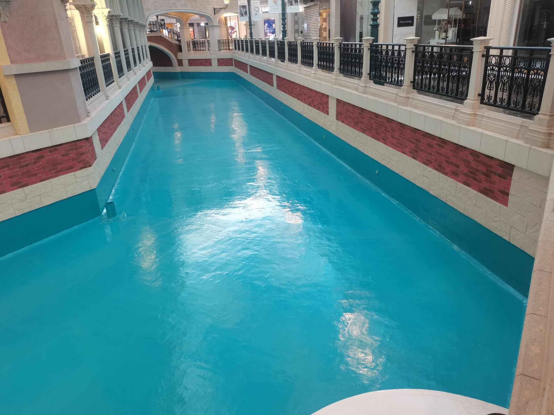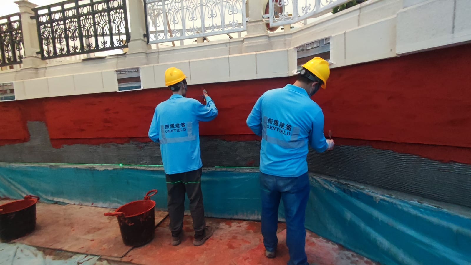 本次翻新三條人工運河,工程內容包含:拆除原有裝飾層與藝術水泥批盪,重新施作防水系統,並以工匠技藝手工重塑磚紋與飾面效果,精準重現原有建築風格與細節之美。